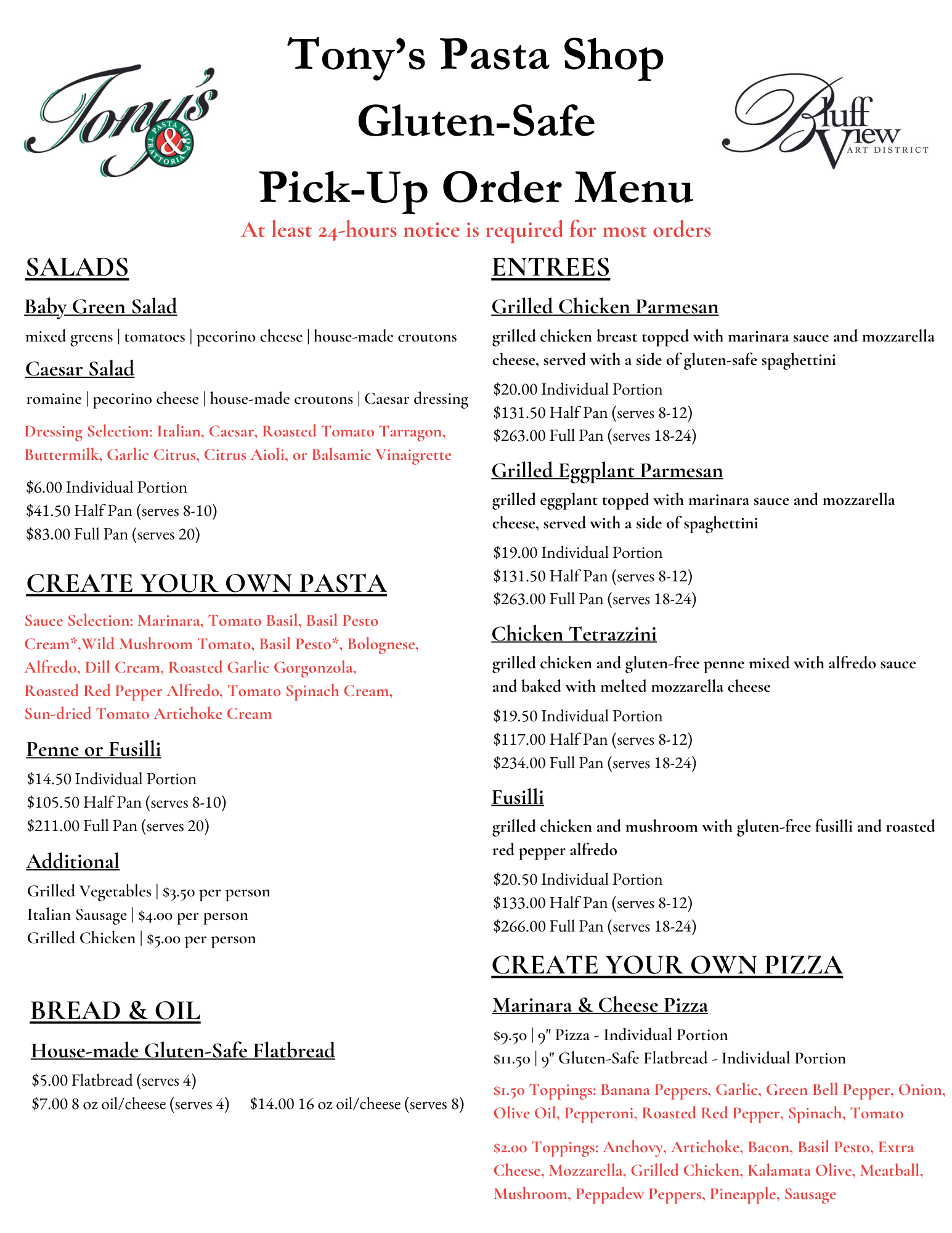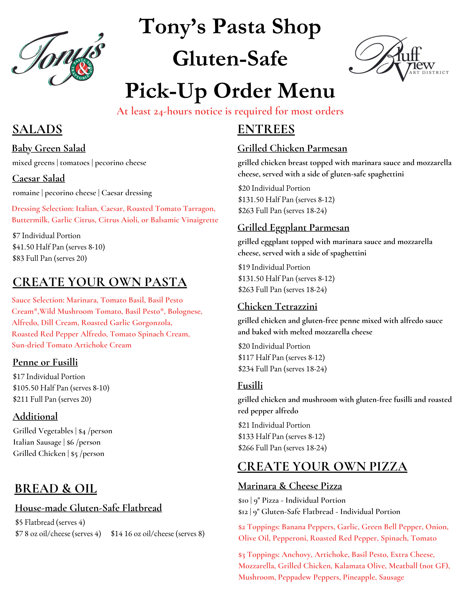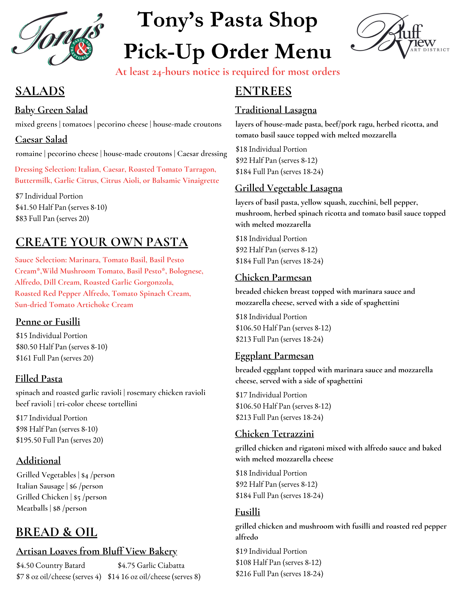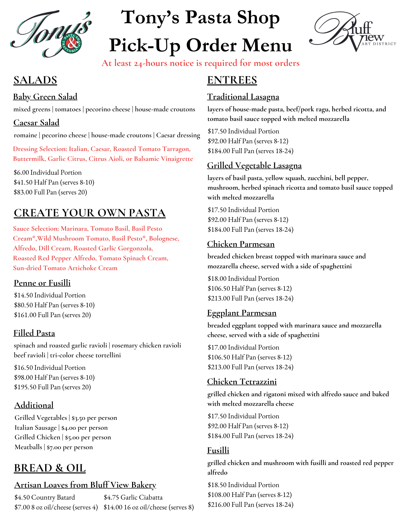 At least 24 hours notice is required for most orders.